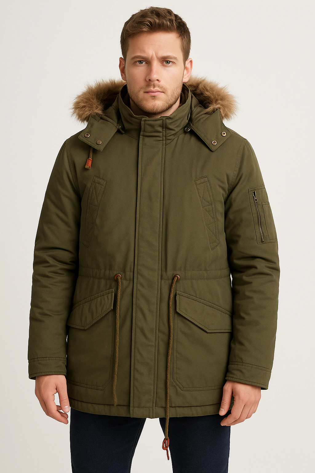Esta campera cuenta con capucha y piel desmontable, permitiéndote adaptarla a tus necesidades. Su cintura ajustable asegura un ajuste cómodo y personalizado, ideal para cualquier ocasión.