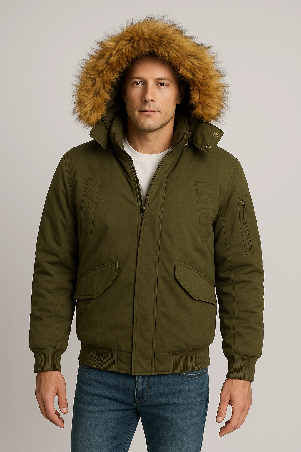 La prenda perfecta para enfrentar el clima cambiante. Esta campera ofrece una combinación ideal de estilo y funcionalidad, con una capucha que te protege del viento y la lluvia. Los detalles de piel desmontables permiten personalizar tu look según la ocasión.